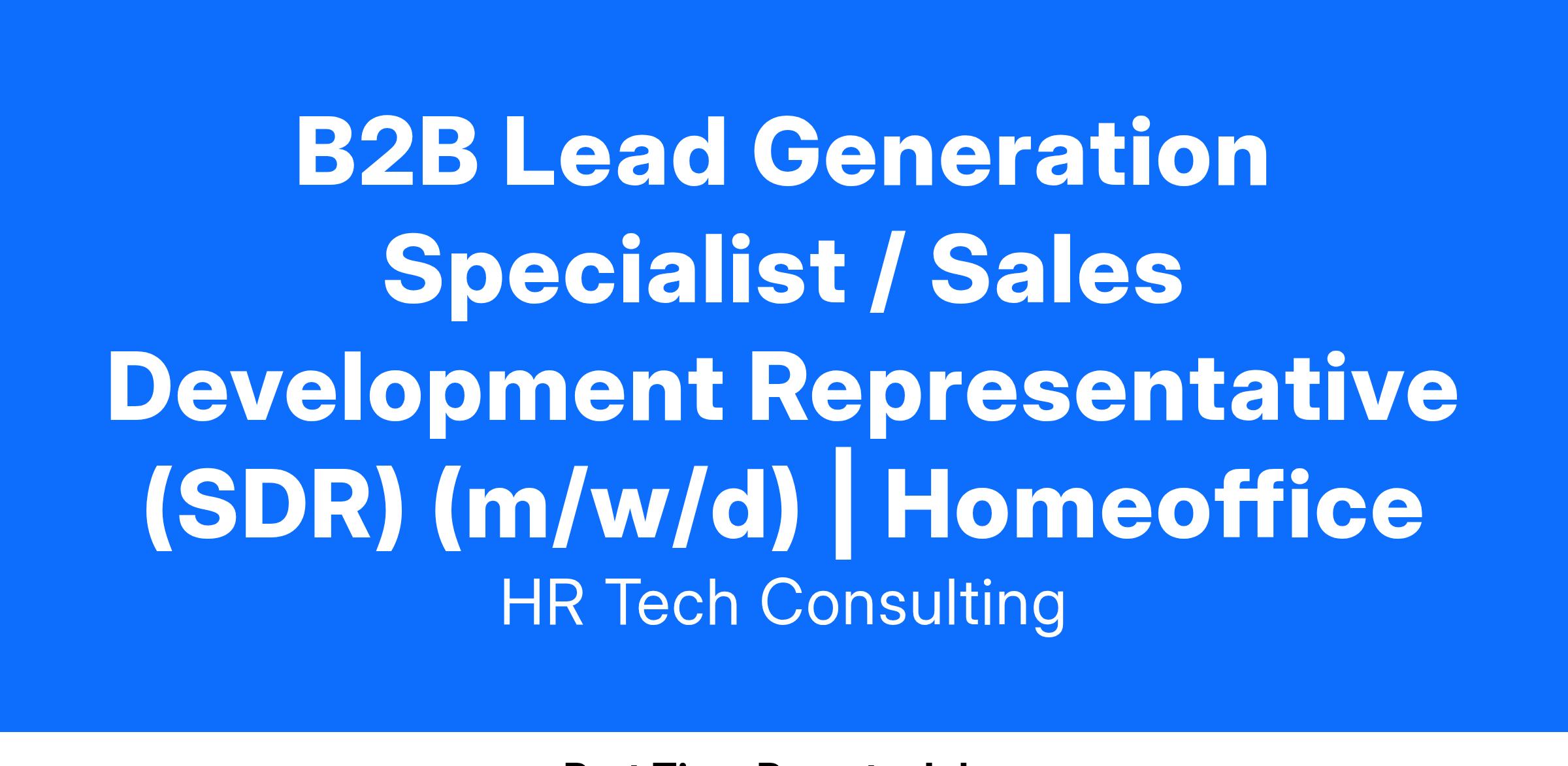 Bringe deine Leidenschaft ein und gestalte mit uns die Zukunft! Zur Verstärkung unseres Teams suchen wir einen motivierten und engagierten B2B Lead Generation Specialist / Sales Development Representative (SDR) (m/w/d), der unsere Verkaufsaktivitäten unterstützt und neue Geschäftsmöglichkeiten erschließt.