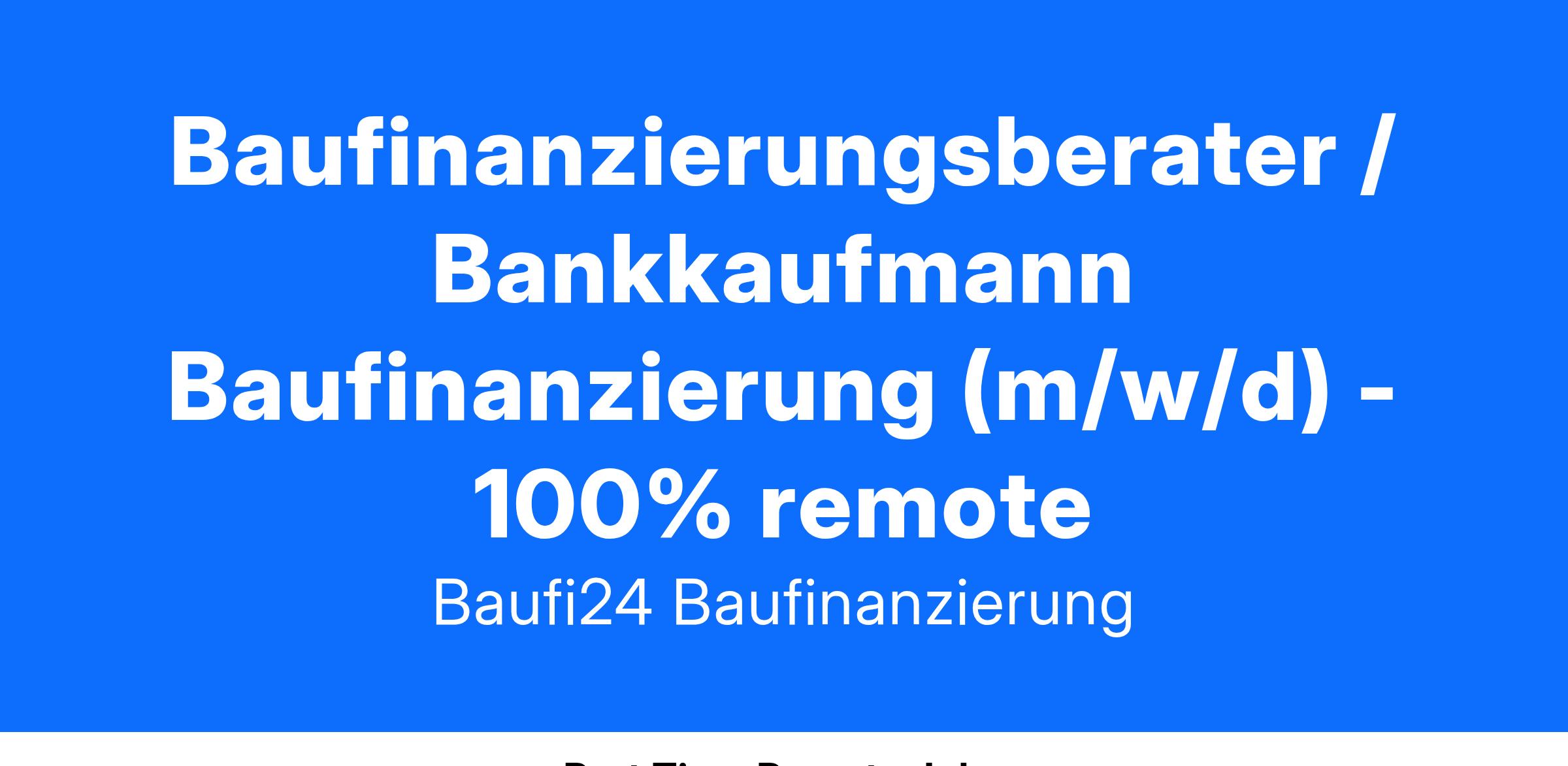 Wenn Du eine spannende berufliche Herausforderung in einem wachsenden und zukunftsorientierten Unternehmen suchst und Deine Vertriebsfähigkeiten unter Beweis stellen möchtest, dann bist du bei Baufi24 genau richtig. Werde Teil unseres Teams und gestalte die Zukunft der Immobilienfinanzierung mit!