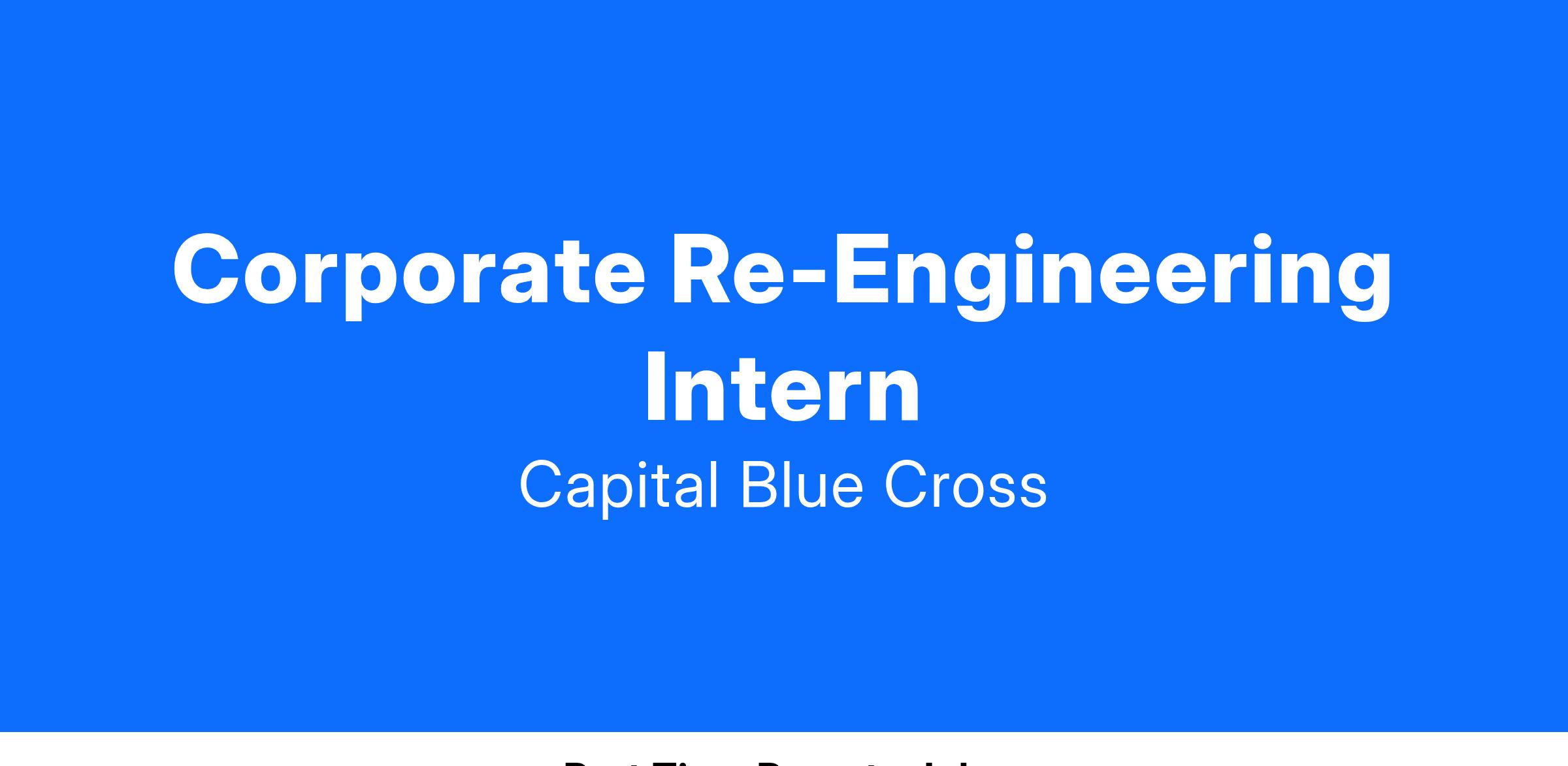 Capital Blue Cross has an exciting opportunity for a student to work alongside our Corporate Re-Engineering team during the summer of 2025. Capital Blue Cross' internship program is looking for highly motivated, creative individuals with diverse backgrounds, superior academic credentials and significant personal achievements who are actively enrolled in an undergraduate or advanced degree program, to work in a challenging environment where contribution, teamwork and communication are vital to the success of the organization.