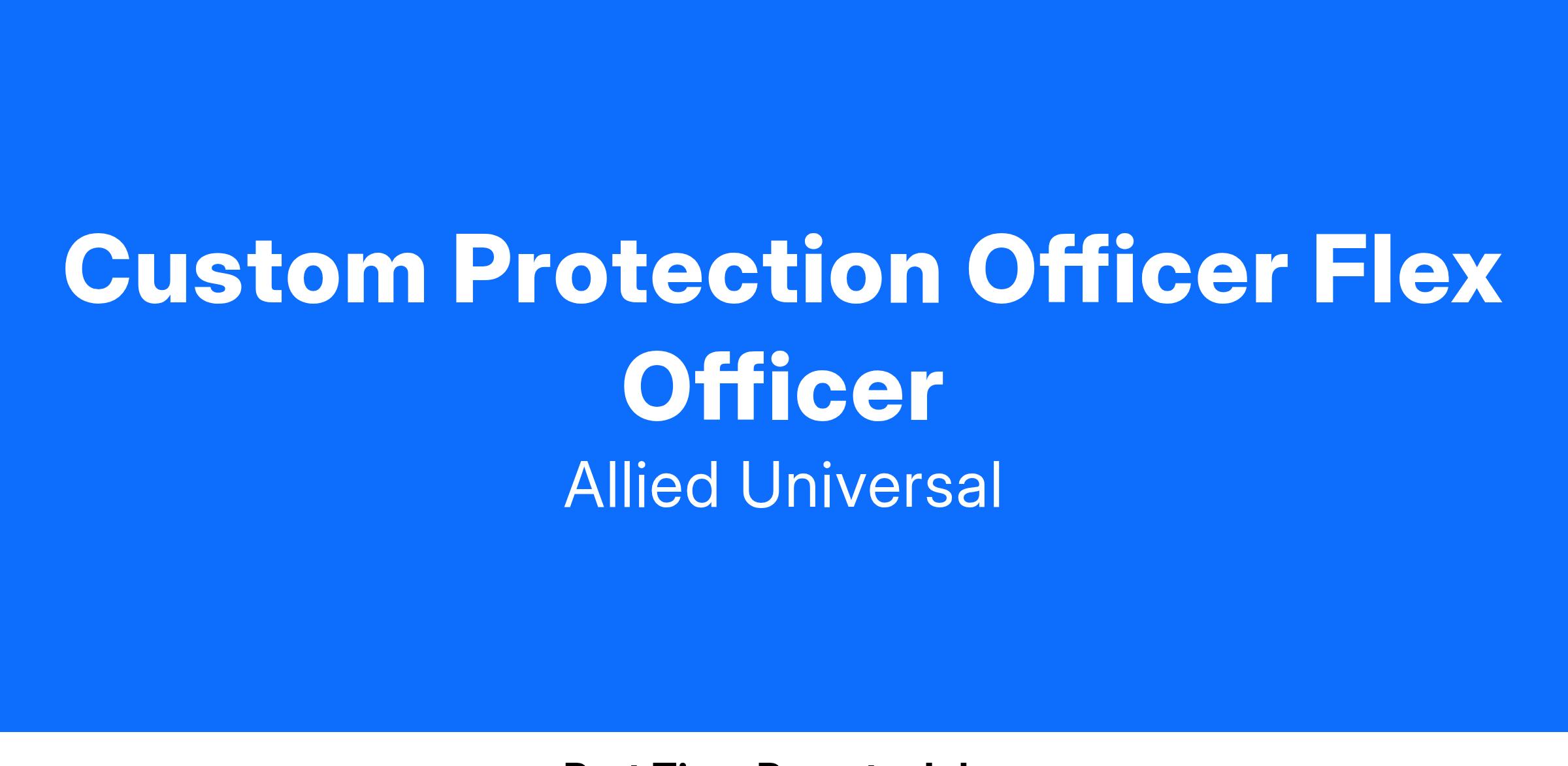 Allied Universal® is hiring a Custom Protection Officer (CPO) Flex Officer. The Custom Protection Officer Flex Officer will conduct armed and/or unarmed foot and/or vehicle patrol (interior and/or exterior). Additional duties include control access and egress; monitor CCTV and alarm systems; compose reports; deter criminal activity and misconduct. The Custom Protection Flex Officer will work at various assignments and may be called upon to work irregular shifts at times with little to no advance notice.