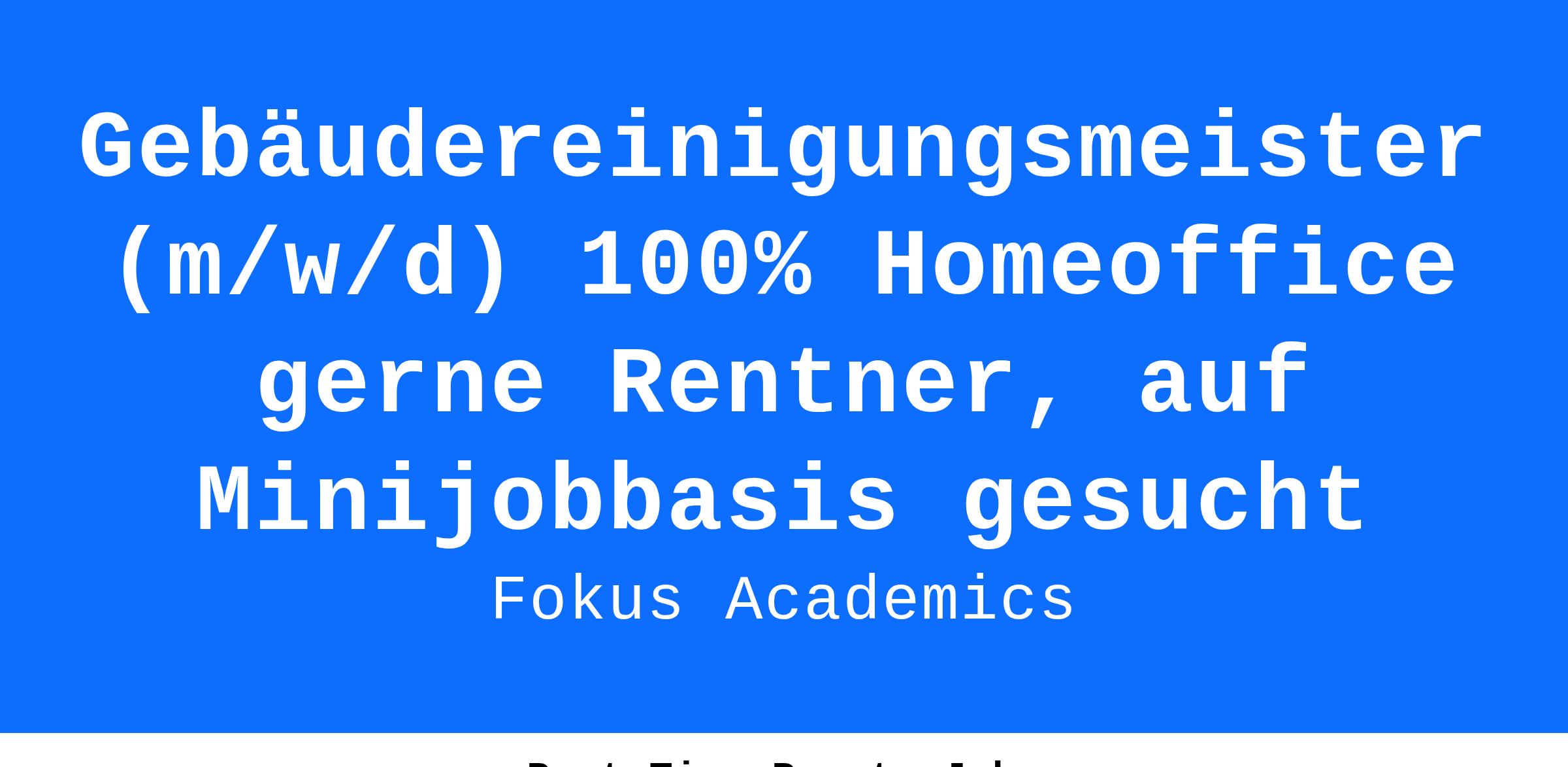 Gebäudereinigungsmeister (m/w/d) 100% Homeoffice gerne Rentner, auf Minijobbasis gesucht