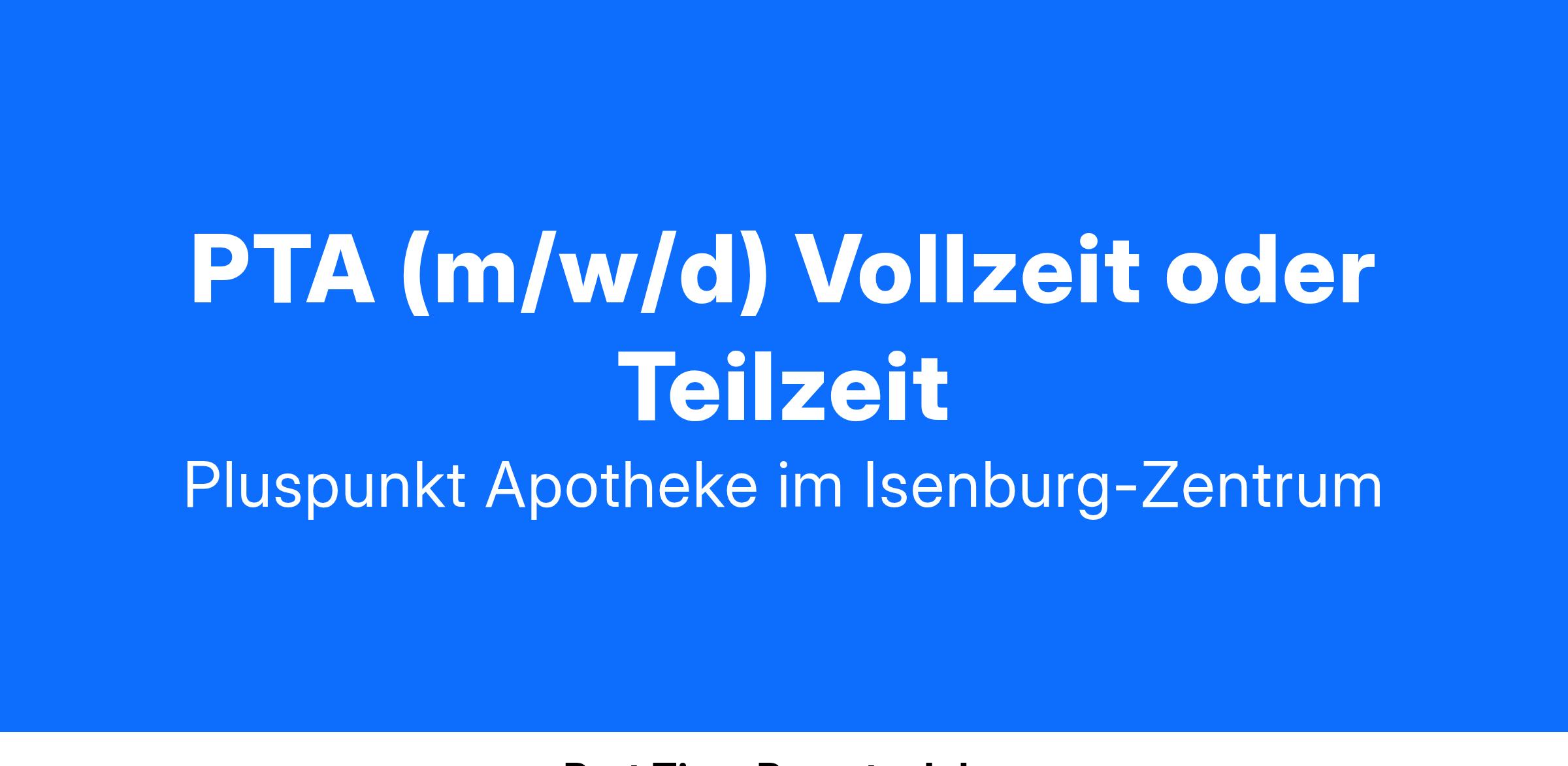 Die Pluspunkt Apotheke im Isenburg-Zentrum in Neu-Isenburg zum nächstmöglichen Zeitpunkt eine/n Pharmazeutisch-technische/n Assistenten/in.