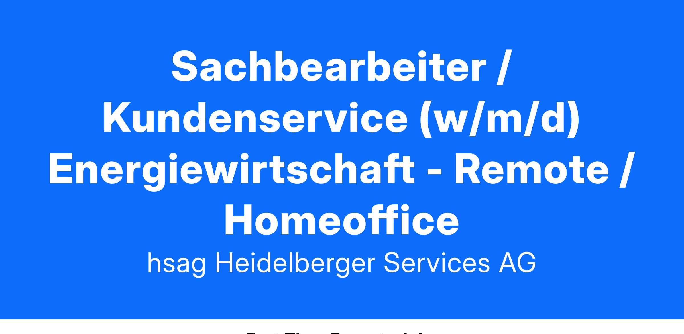 Als Dienstleister für Energieversorgungsunternehmen unterstützen wir unsere Kunden, die Energiewende sowie die Digitalisierung voranzutreiben. Um unsere Teams an den Standorten Münster, Gera, Chemnitz, Essen, Heidelberg, Halle, Magdeburg, Bremen und Walldorf weiter zu stärken, suchen wir fortlaufend Sachbearbeiter / Kundenservice (w/m/d) in der Energiewirtschaft.