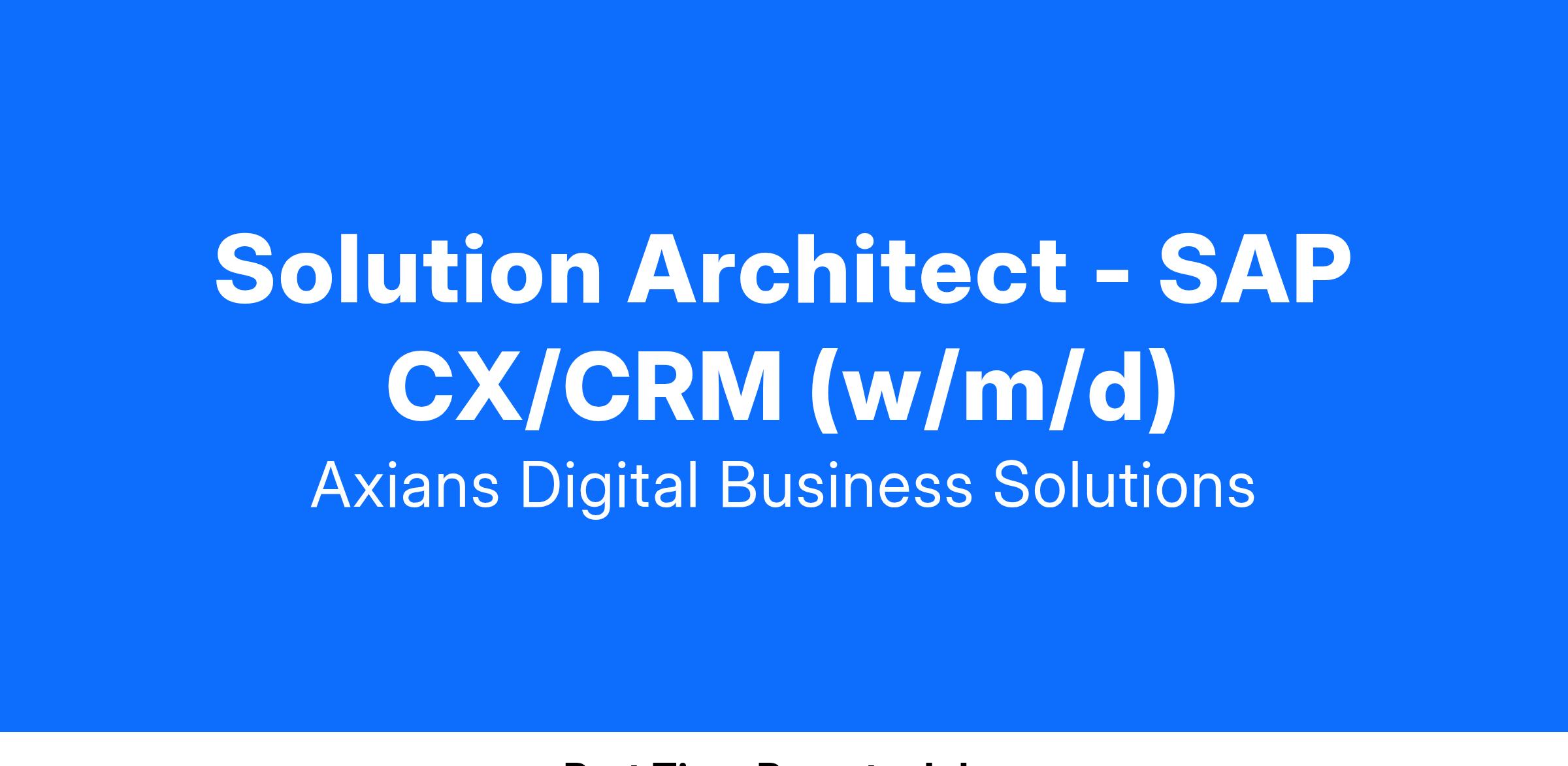 Als Solution Architect -SAP CX/CRM (w/m/d) hast Du die Möglichkeit, Deine Leidenschaft in die Tat umzusetzen und unsere digitalen Lösungen maßgeblich zu gestalten.