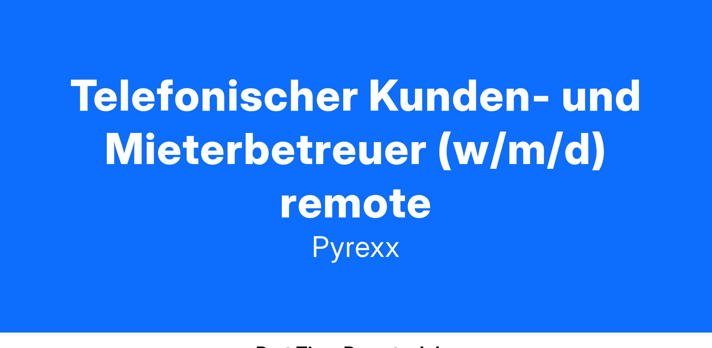 Zur Unterstützung unseres Teams suchen wir ab sofort deutschlandweit einen engagierten Telefonischen Kunden- und Mieterbetreuer (w/m/d) zunächst auf 1 Jahr befristet in Voll- oder Teilzeit (min. 30 h/ Woche).