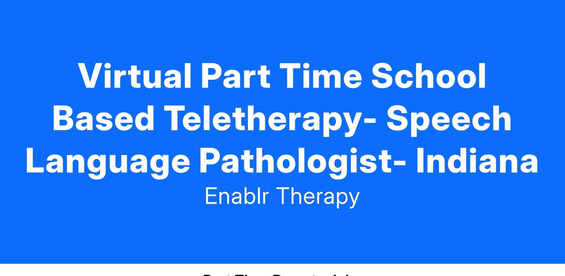Virtual Part Time School Based Teletherapy- Speech Language Pathologist- Indiana