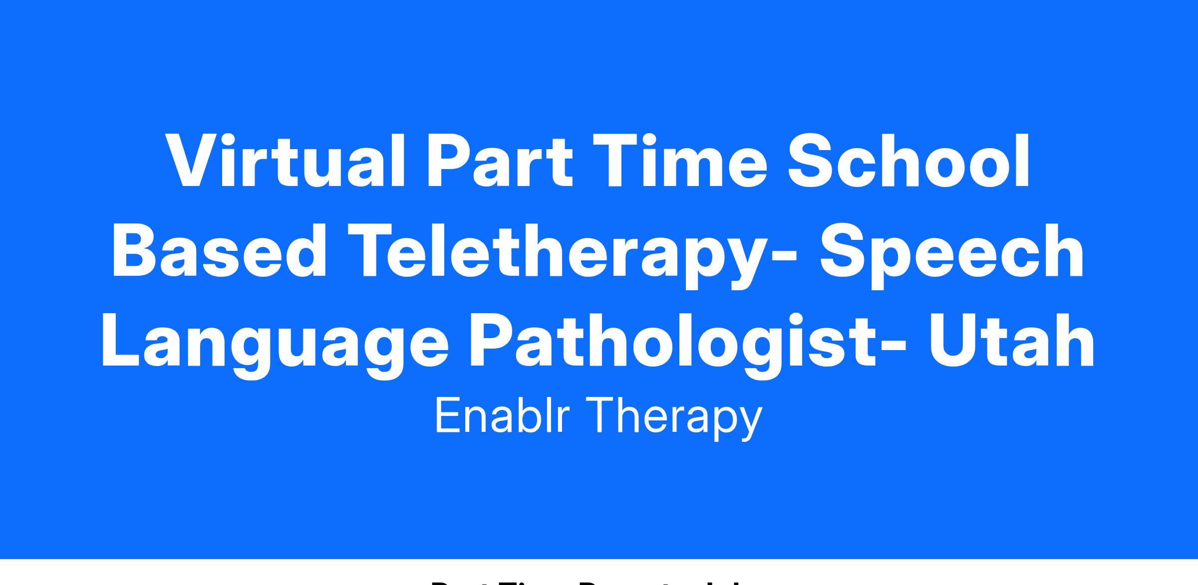 Virtual Part Time School Based Teletherapy- Speech Language Pathologist- Utah