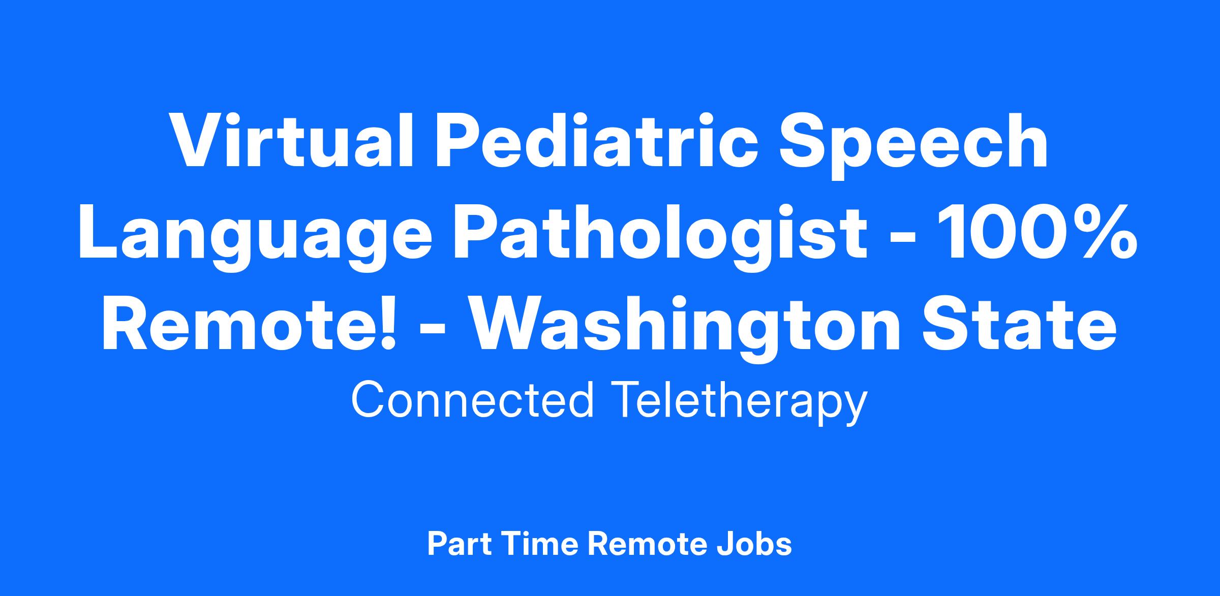 Virtual Pediatric Speech Language Pathologist - 100% Remote! - Washington State