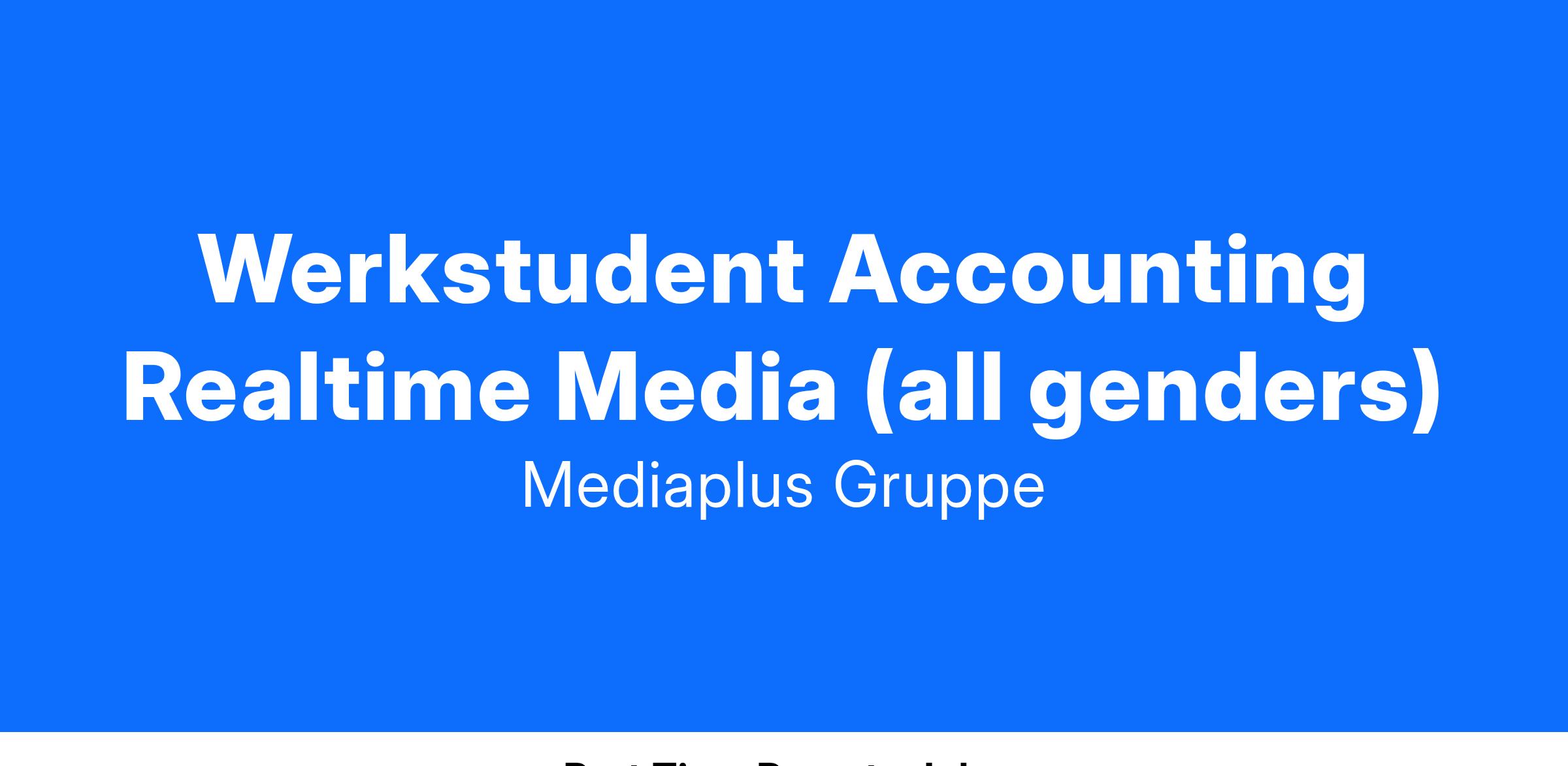 Zum nächstmöglichen Zeitpunkt suchen wir an unseren Standorten München, Hamburg, Berlin oder Köln einen Werkstudent Accounting Realtime Media (all genders) für Mediaplus Realtime, Teil der Serviceplan Agenturgruppe, größte inhaber- und partnergeführte Agenturgruppe Europas.