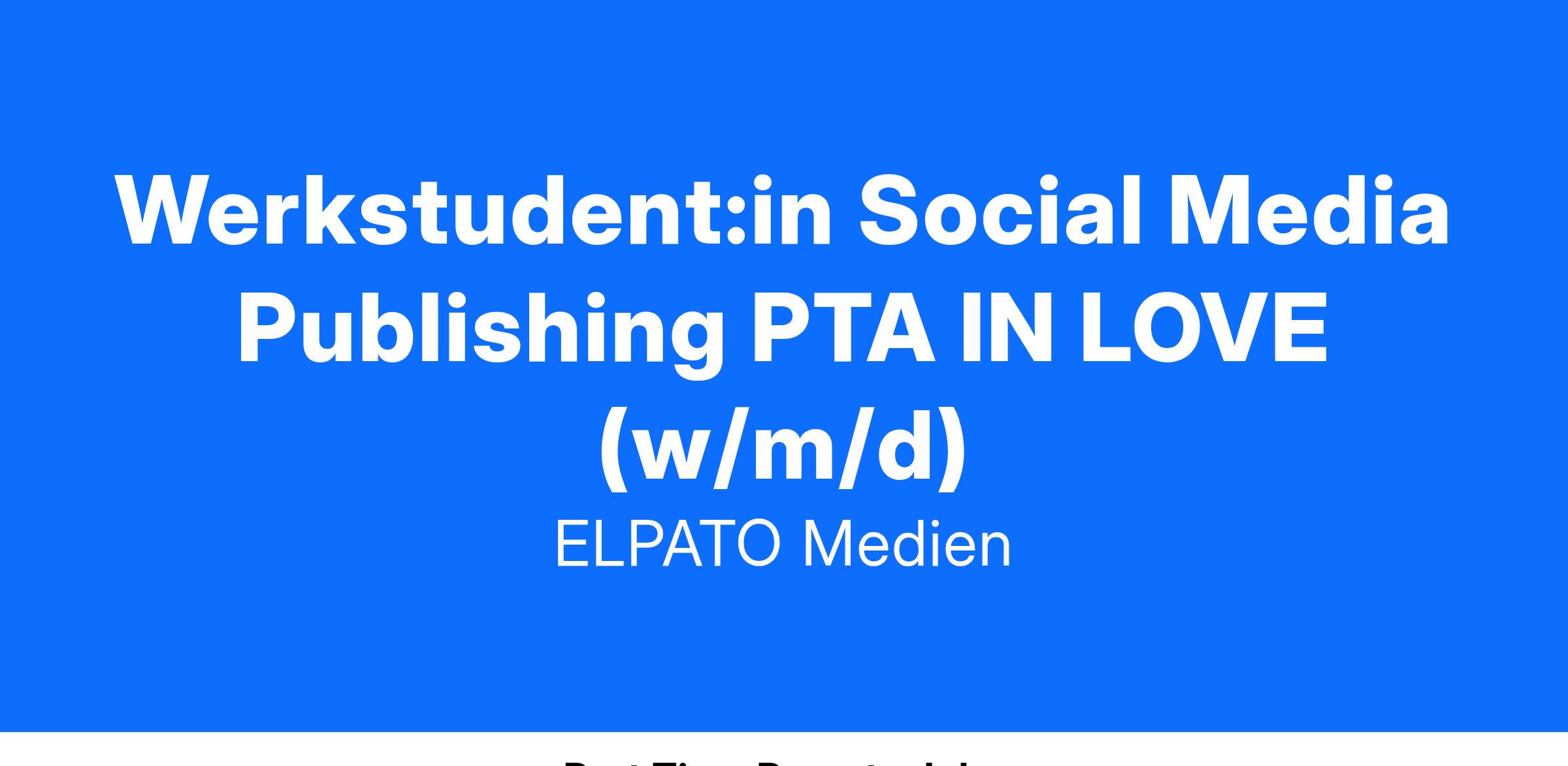 Werkstudent:in Social Media Publishing PTA IN LOVE (w/m/d)